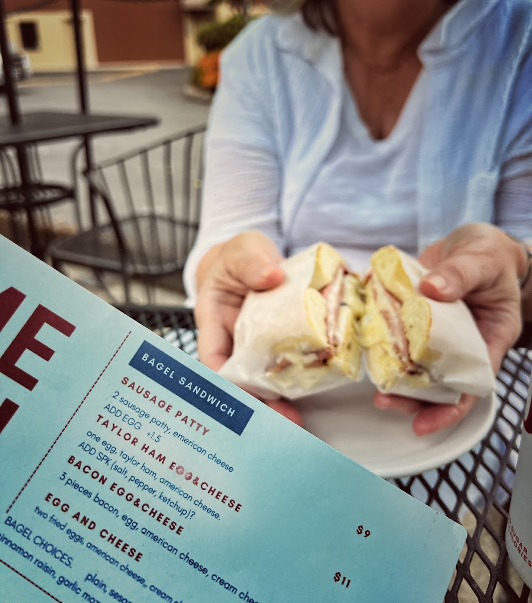 The breakfast classic! 3 strips Bacon, a fried Egg, American Cheese, and Cream Cheese.