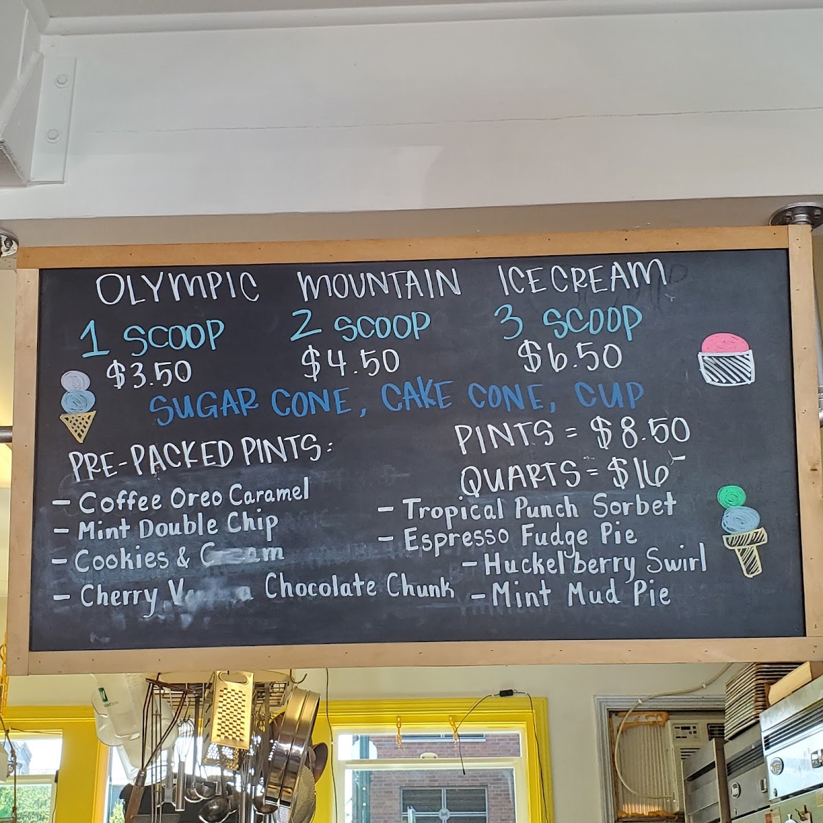 Family owned and operated out of Shelton, WA. Olympic Mountain Ice Cream is available in your choice of cups or sugar cones. Flavors listed on front of the case.